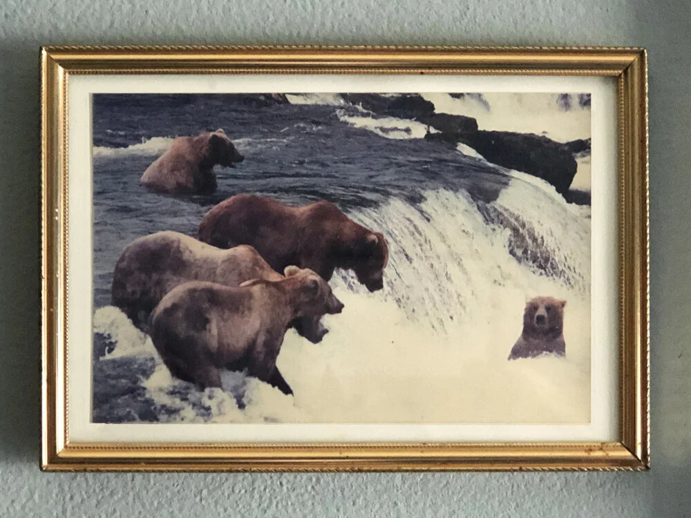 A photo my parents took of a group of bears feeding on salmon in Alaska, it’s my favorite piece on the wall.